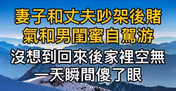 人妻不聽勸和男閨蜜自駕遊15天,丈夫說就「讓妳玩個夠」回家打開門「癱坐在地」「親走葬送婚姻」:家沒了!