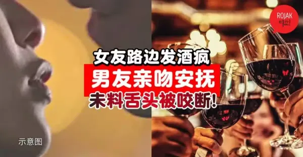 耍酒瘋好可怕!女友喝醉路邊大鬧⚡男友「舌吻安撫」未料慘被咬斷!