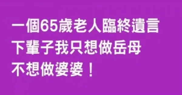 一個65歲老人臨終遺言:下輩子我只想做岳母不想做婆婆!