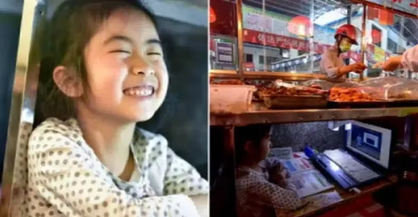 7歲女童,每天窩滷味攤下苦讀,陪伴父母工作,不荒廢課業狹窄空間不喊苦,為母好欣慰