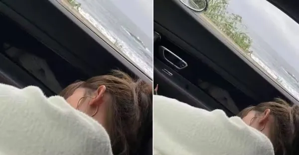 帶女友去看海!他曬照片「女友整路都在睡」超無言 網友「放大照片後發毛」驚喊:快去廟裡拜拜