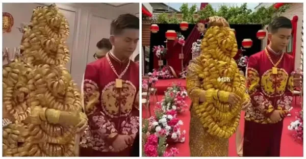 看出娘家財力!新娘結婚「全身蓋滿金手鐲」根本看不到臉 網驚喊「不會被壓垮嗎」真相太爆笑