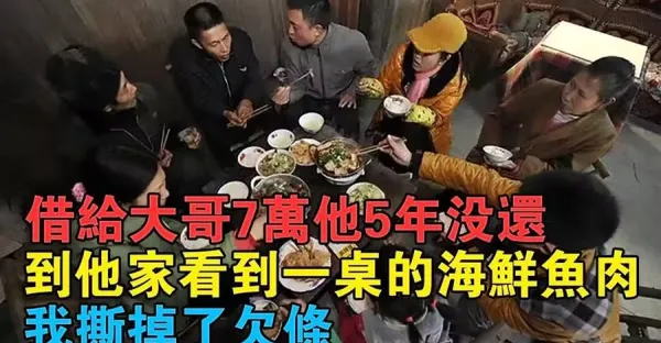 借給大哥7萬他5年沒還 ,到他家看到一桌的海鮮魚肉,我立即撕掉了欠條