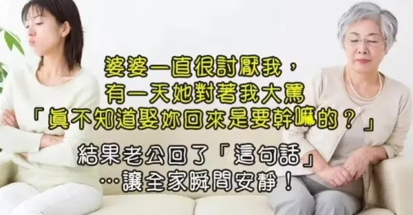 婆婆一直很討厭我,有一天她對著我大罵「真不知道娶妳回來是要幹嘛的?」結果老公回了「這句話」… 讓全家瞬間安靜