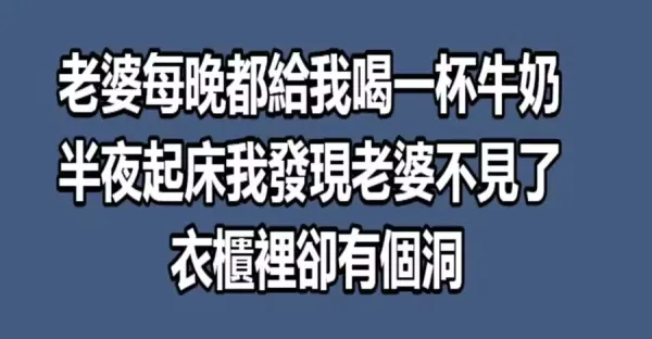 老婆每晚都給我喝一杯牛奶,半夜起床我發現老婆不見了,衣櫃裡卻有個洞