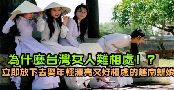 為什麼台灣女人難相處!?立即放下去娶年輕漂亮又好相處的越南新娘!