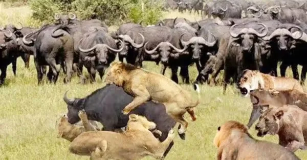 80隻野牛找獅子報仇,全都圍上來,把獅群打得落花流水
