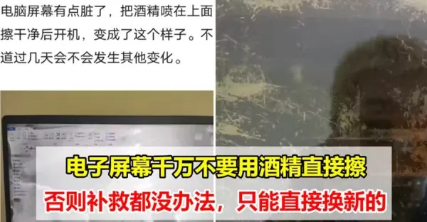 電子螢幕千萬不要用酒精直接擦,否則補救都沒辦法,只能直接換新的