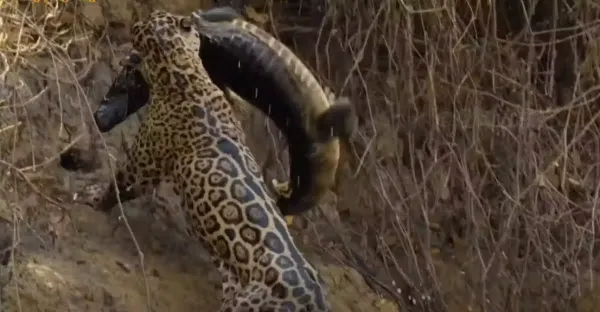 美洲豹下水獵殺鱷魚,一擊致命,鱷魚毫無還手之力_刀疤_公豹_母豹