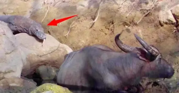 面對科莫多龍的偷襲,一噸重的野牛並不把「小蜥蜴 」放在眼裡,被咬中腳「不痛不癢」離開,二十天後巨蜥迎來牛肉大餐!!