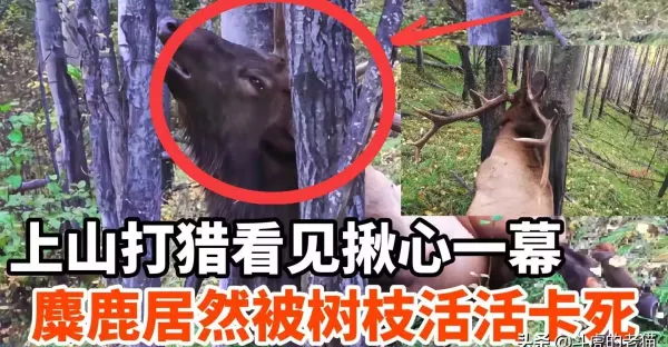 獵人上山打獵,看見揪心的一幕!麋鹿被兩棵樹活活卡死_鹿角_時候_頭角