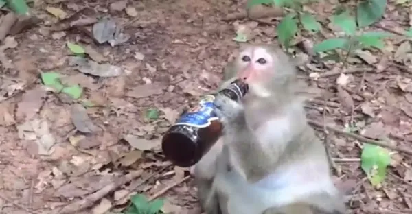 猴子一口氣「將整瓶酒喝光」,接下來請憋住別笑,「鏡頭記錄」爆笑一幕