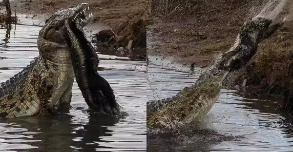 "常在河邊走,哪能不濕鞋",平頭哥河邊被尼祿鱷咬住,東甩西甩成碎片!