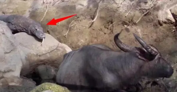 面對科莫多龍的偷襲,一噸重的野牛並不把「小蜥蜴 」放在眼裡,二十天後巨蜥迎來牛肉大餐