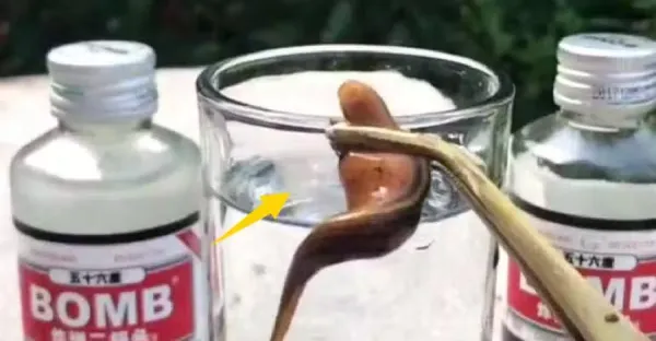 把水蛭放進56度二鍋頭中,場面瞬間失控,鏡頭記錄全過程