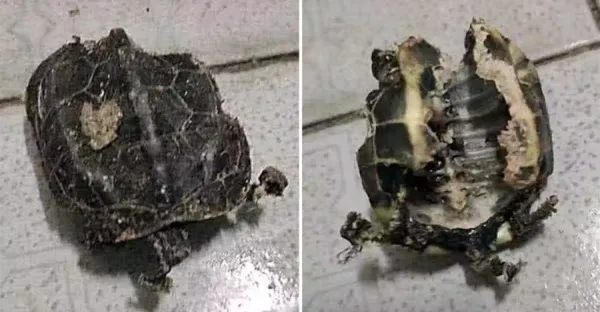 主人買了一隻寵物龜,幾天后被啃得只剩下殼,抓到兇手後,氣得直咬牙