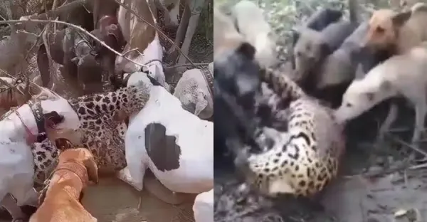 「豹落平陽被犬欺」,村民用20隻獵狗戰花豹,花豹反抗至最後一口氣也沒服輸