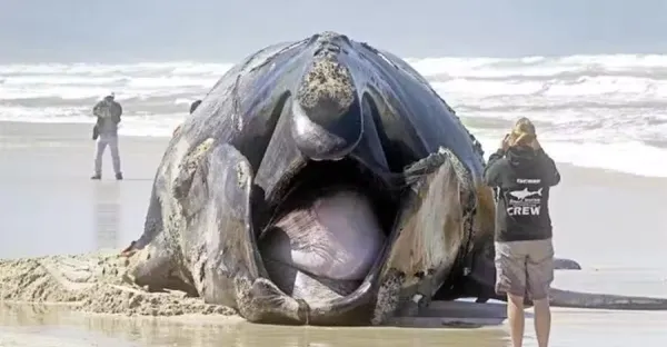 男子在海邊沙灘散步時發現一個「龐然大物」,仔細一看令人心痛不已