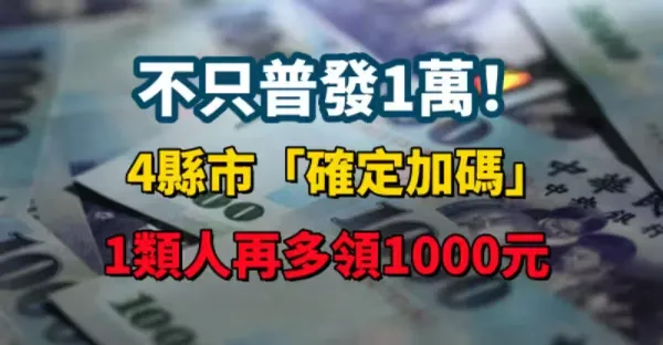 快訊/不只普發1萬!4縣市「確定加碼」1類人再多領1000元