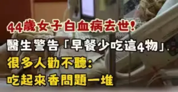 44歲女子白血病去世!醫生警告「早餐少吃這4物」很多人勸不聽:吃起來香問題一堆~