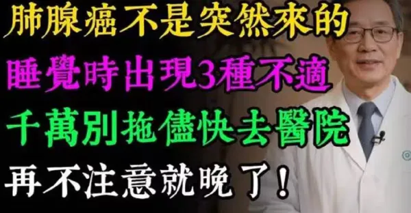 肺腺癌不是突然來的!睡覺時身體若有3種「怪象」, 千萬別拖儘快去醫院,再不注意就晚了!