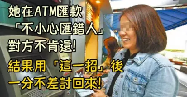 她在ATM匯款「不小心匯錯人」對方不肯還錢!!結果用「這一招」後....一分不差討回來!