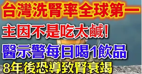 台灣洗腎率全球第一!主因「不是吃太咸」醫示警每日「喝1飲品」8年後恐導致腎衰竭!