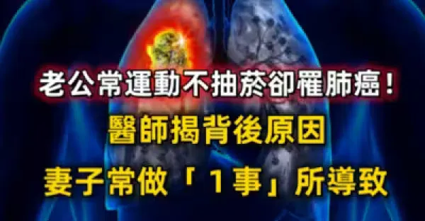 老公常運動不抽煙卻罹肺癌!醫師揭背後原因:妻子常做「1事」所導致