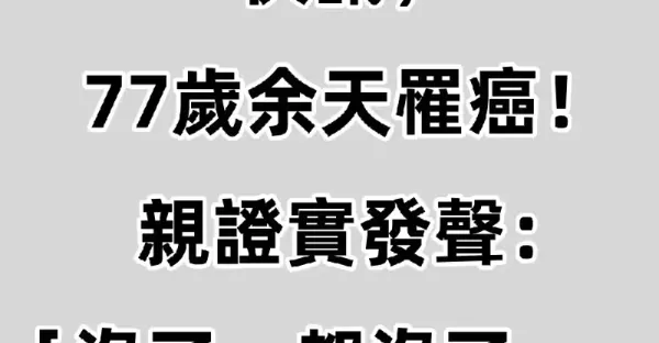 快訊/77歲余天罹癌! 親證實發聲:「沒了,都沒了...」