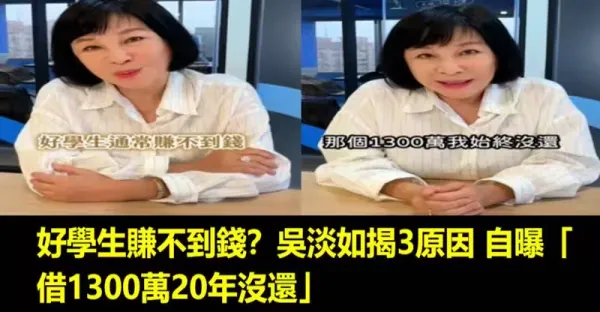 好學生賺不到錢?吳淡如揭3原因 自曝「借1300萬20年沒還」
