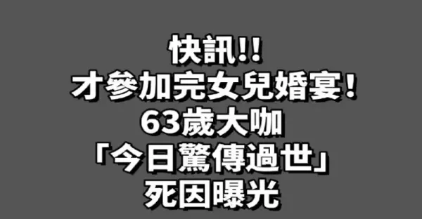 快訊/ 才參加完女兒婚宴!!! 63歲大咖「今日驚傳過世」死因曝光