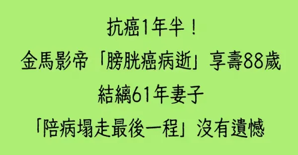 抗癌1年半!金馬影帝「膀胱癌病逝」享壽88歲 結縭61年妻子「陪病塌走最後一程」沒有遺憾