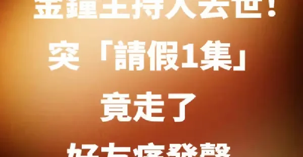金鐘主持人去世!突「請假一集」竟走了,好友痛發聲