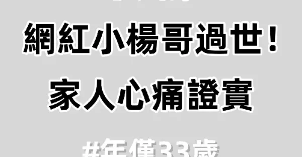 快訊/網紅小楊哥過世! 家人心痛證實 #年僅33歲