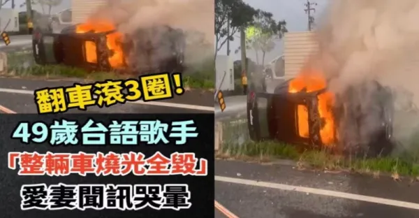 翻車滾3圈!!! 49歲台語歌手「整輛車燒光全毀」愛妻聞訊哭暈