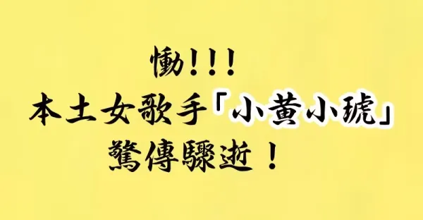 慟!!! 本土女歌手「小黃小琥」驚傳驟逝