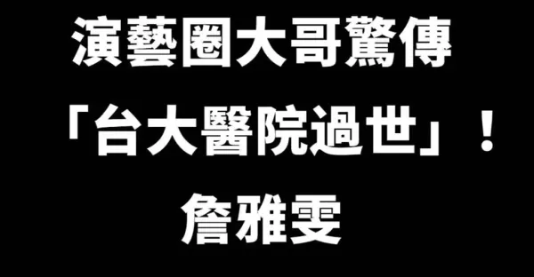 快訊/演藝圈大哥驚傳「台大醫院過世」!!詹雅雯「崩潰發聲」