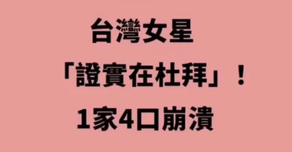 快訊 / 台灣女星「證實在杜拜」1家4口崩潰