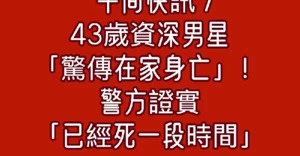 午間快訊/43歲資深男星「驚傳在家身亡」!警方證實「已經死一段時間............」
