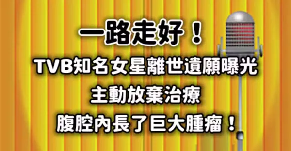 一路走好!TVB知名女星離世遺願曝光,主動放棄治療,腹腔內長了巨大腫瘤............