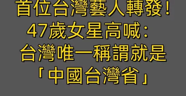首位台灣藝人轉發! 47歲女星高喊:台灣唯一稱謂就是「台灣」