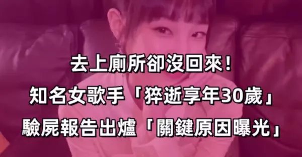 去上廁所卻沒回來!知名女歌手「猝逝享年30歲」 驗屍報告出爐「關鍵原因曝光...」