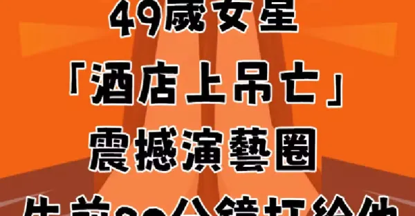 演藝圈噩耗!49歲女星「酒店上.吊.亡」震撼演藝圈 「生前20分鐘打給他...」通話內容引鼻酸
