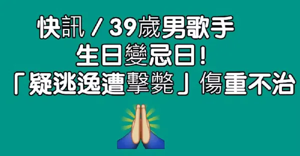 快訊/39歲男歌手生日變忌日!「疑逃逸遭擊斃」傷重不治