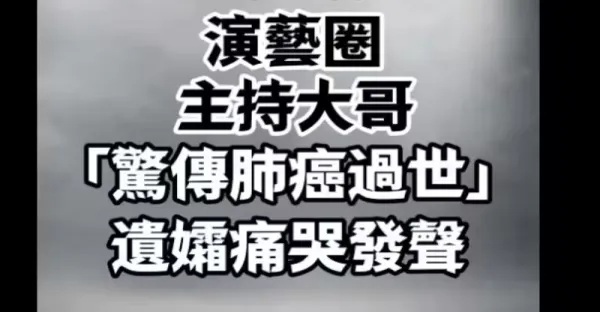 快訊/演藝圈主持大哥「驚傳肺癌過世」!遺孀痛哭發聲
