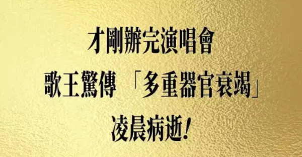才剛辦完演唱會 歌王驚傳「多重器官衰竭」凌晨病逝....