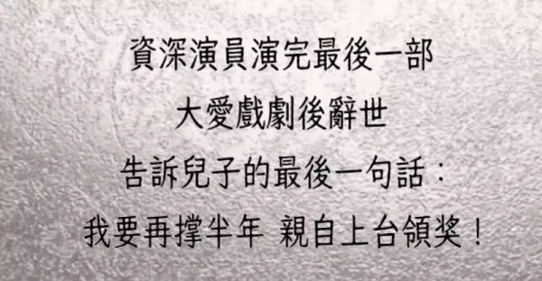 台資深演員演完最後一部大愛戲劇後辭世,告訴兒子的最後一句話:我要再撐半年,親自上台領獎!