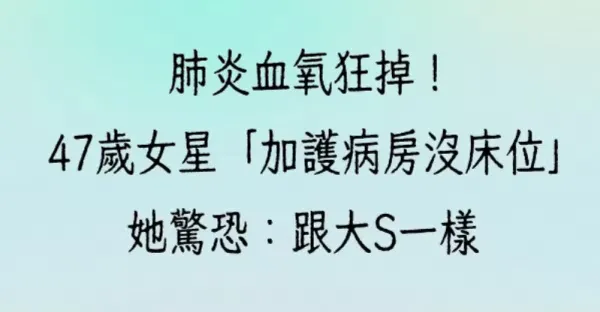 肺炎血氧狂掉!47歲女星「加護病房沒床位」 她驚恐:跟大S一樣!