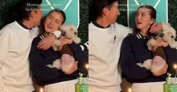 吳千語為施伯雄慶生!豪門老公驚喜索吻狂親,情不自禁咬耳朵被瞪