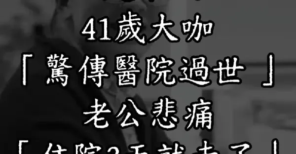 又是甲流!41歲大咖「驚傳醫院過世 」...老公悲痛「住院3天就走了」